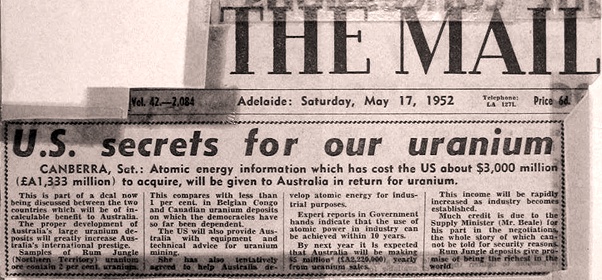 We see from The Mail, article, that the US would provide atomic energy information, in return of securing Australian uranium.